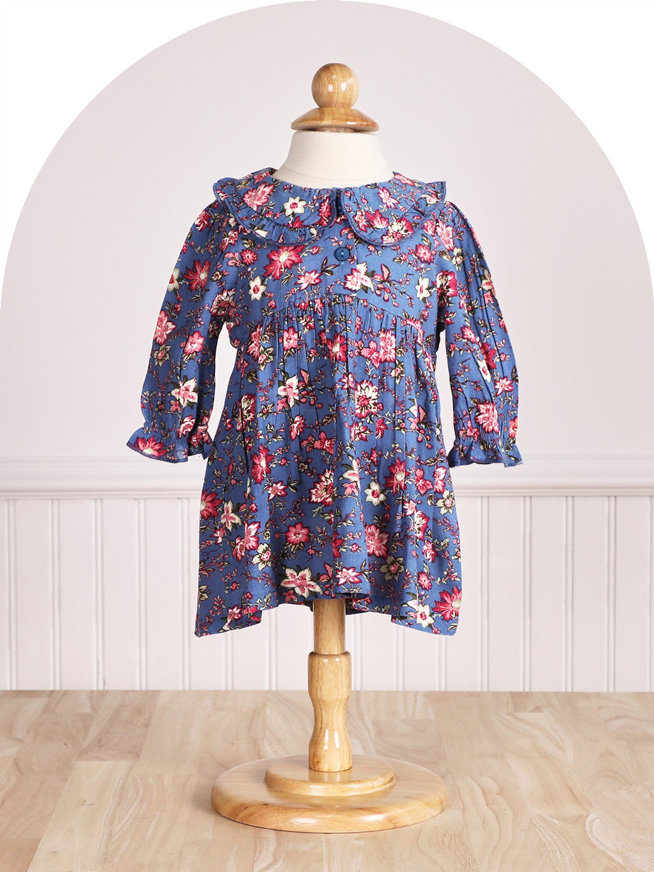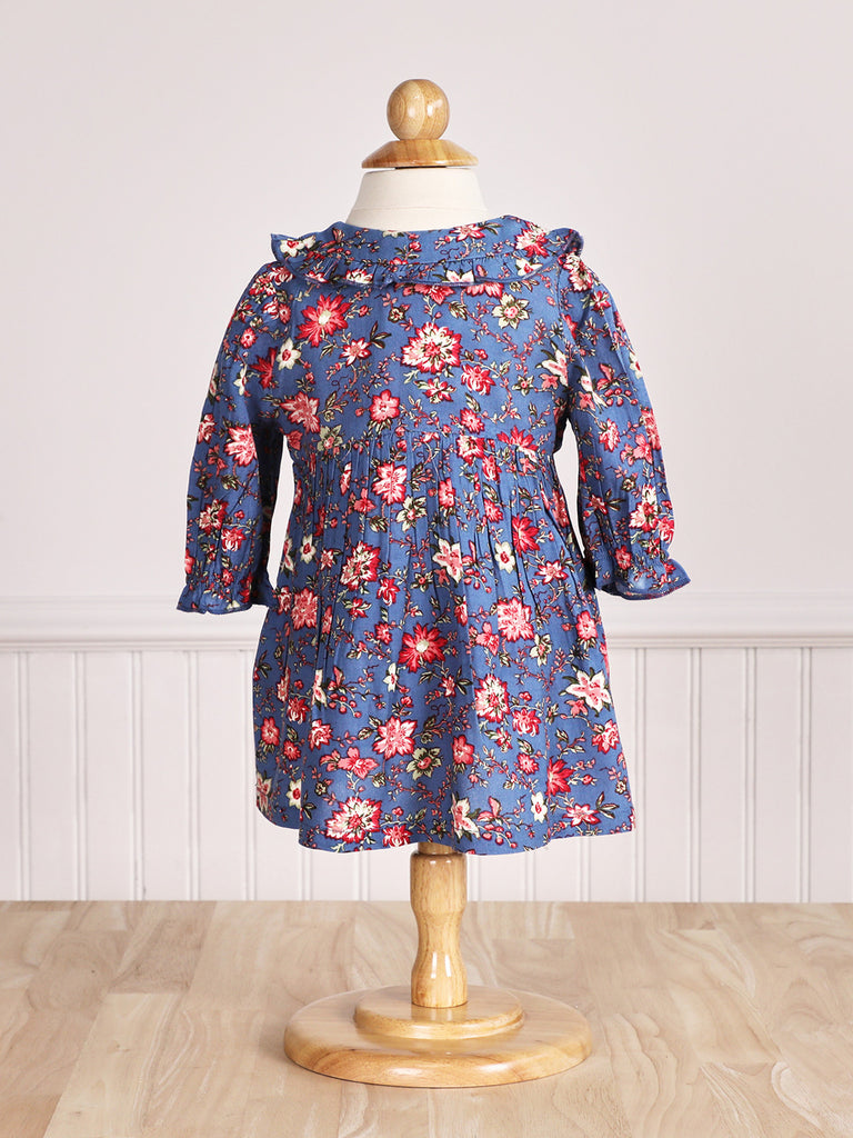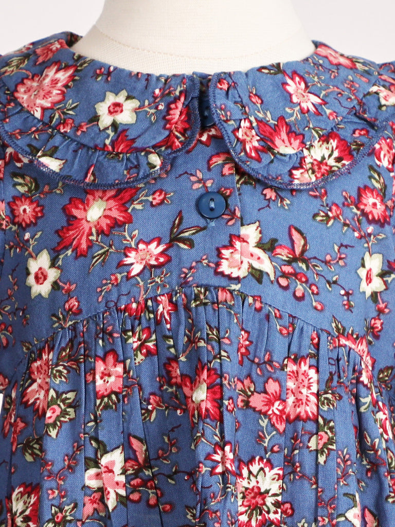 Adorable! Beautiful blue picture-perfect floral with chalk buttons, a Peter Pan collar, and flowy gathers at the waist.