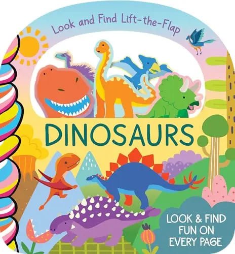 Get ready for a roar-some discovery! Dinosaurs invites kids to explore prehistoric scenes, lift flaps, and search for hidden dinosaurs, plants, and surprises in a fun, interactive board book. Dinosaurs is the latest title in Taffy Tales' best-selling Look and Find Lift-the-Flap series! This fun and colorful board book takes young readers back to the prehistoric world of dinosaurs, where they’ll explore vibrant scenes filled with these amazing creatures. From towering T. rex to gentle Brachiosaurus, children will be encouraged to look and find hidden items, making every turn of the page a thrilling discovery. Sturdy interactive flaps add a hands-on element that keeps kids engaged as they uncover dinosaurs, plants, and playful surprises. Why you’ll love Dinosaurs: Interactive exploration: Lift flaps to discover hidden dinosaurs and surprises, fostering curiosity and engagement. Observation skills: Look-and-find activities help develop attention to detail, focus, and early cognitive skills. Dino-filled fun: Vibrant illustrations and playful scenes spark imagination and keep young readers entertained. Perfect for dinosaur enthusiasts, this book combines learning and fun in a prehistoric adventure your child will want to revisit again and again! About the Look and Find Lift-the-Flap series: The Look and Find Lift-the-Flap series from Taffy Tales features interactive titles on subjects kids love. These books support early language learning, concept development, and hands-on discovery. Each title surprises and delights, making them cherished reads for little ones.