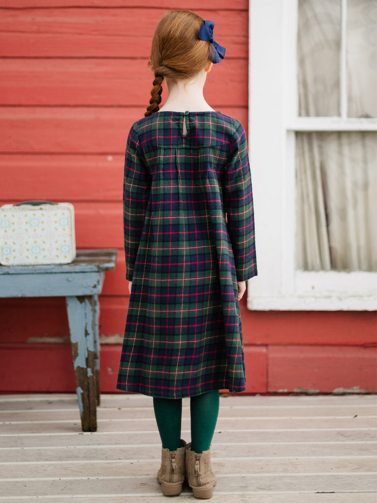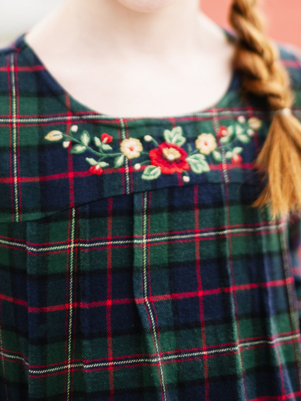 April is off to the races with this exquisitely cozy brushed cotton dress showcasing hand-guided embroidery and delicate crochet trims.