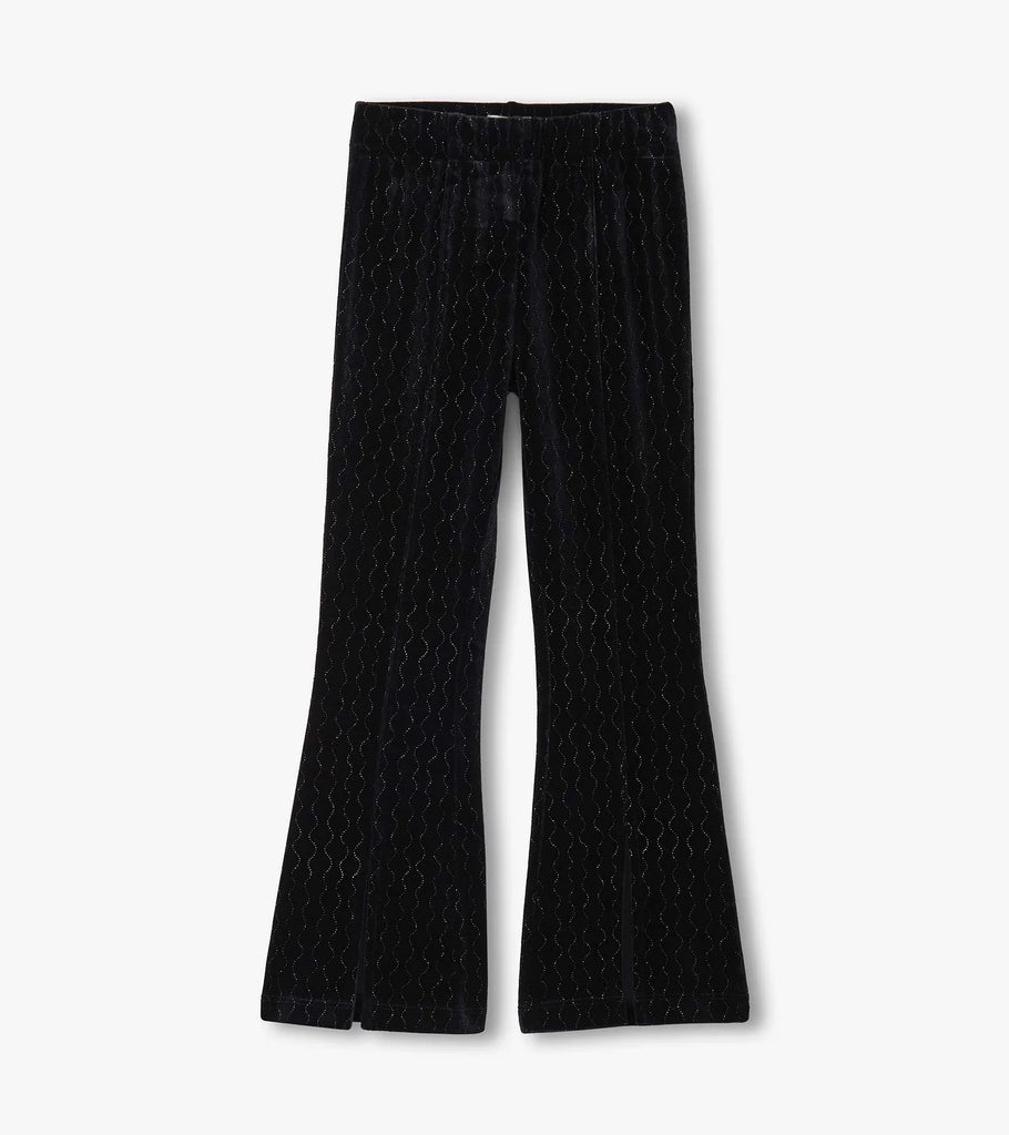 Hatley Fall 2025 Black Sparkle Wave Velour Flared Pants