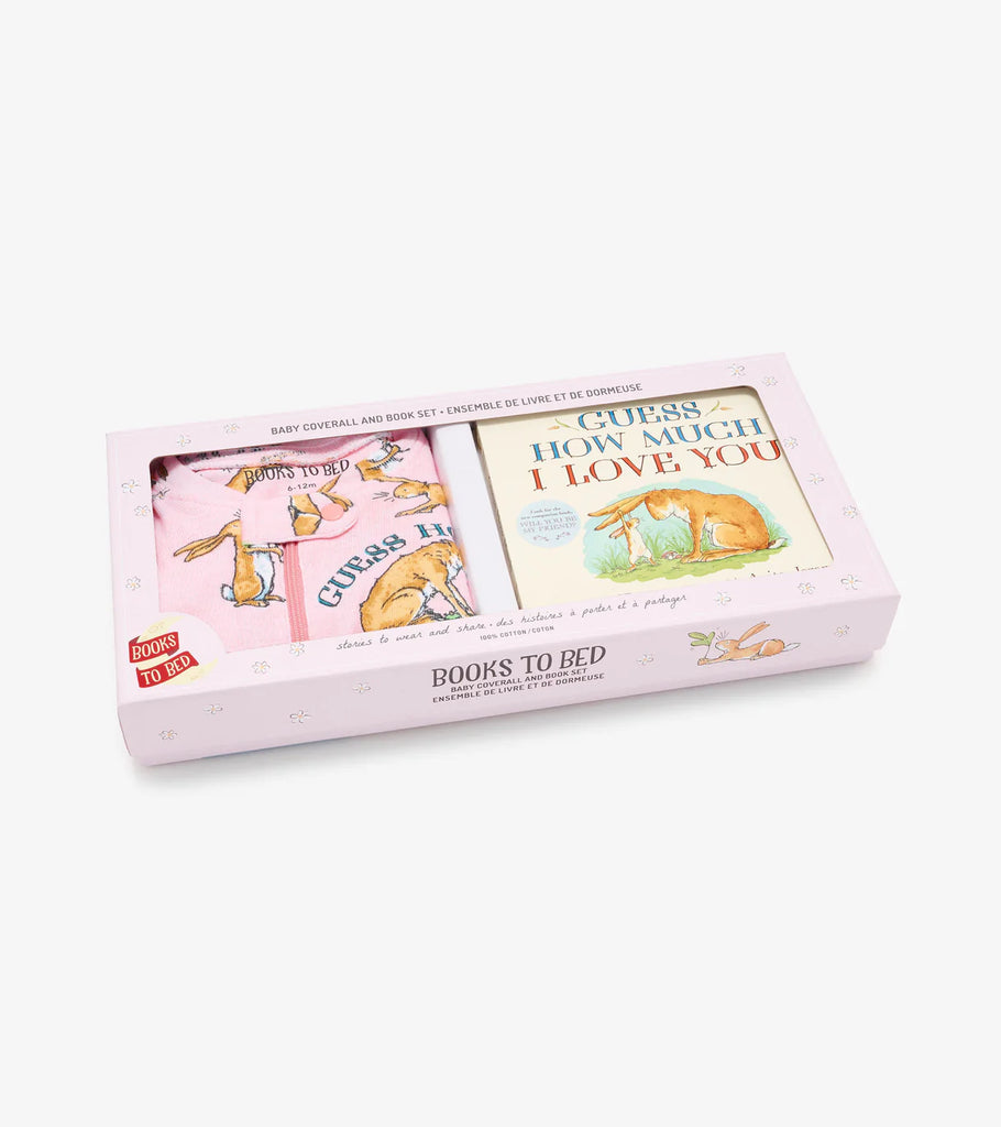 Books to Bed Guess How Much I Love You - Pink Box Set Baby Coverall With Book