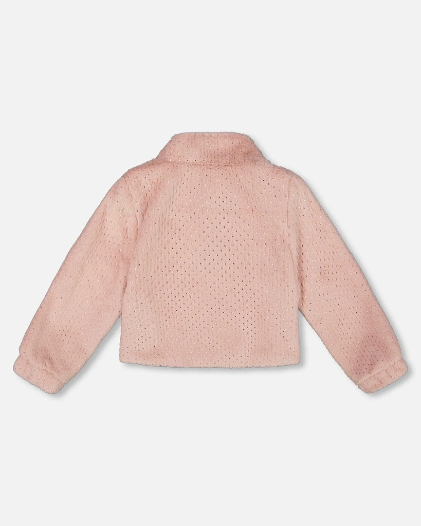 Put the perfect finishing touch on any look in our Starry Night collection with this fun, faux fur outerwear piece. Long sleeves and a high neckline keep it soft and cozy, while a shimmering dot pattern makes it glisten from every angle. Teamed with a matching skirt or layered over her favorite dress, it's made for the girl who always wants to shine!