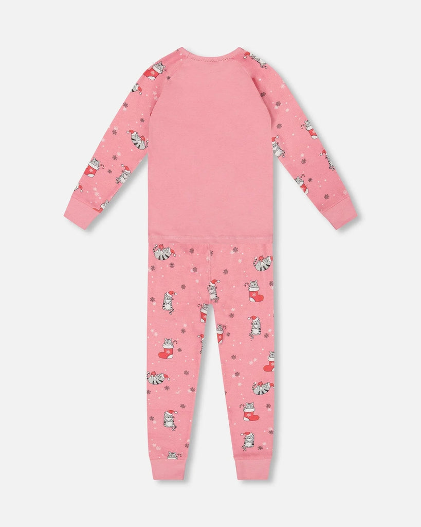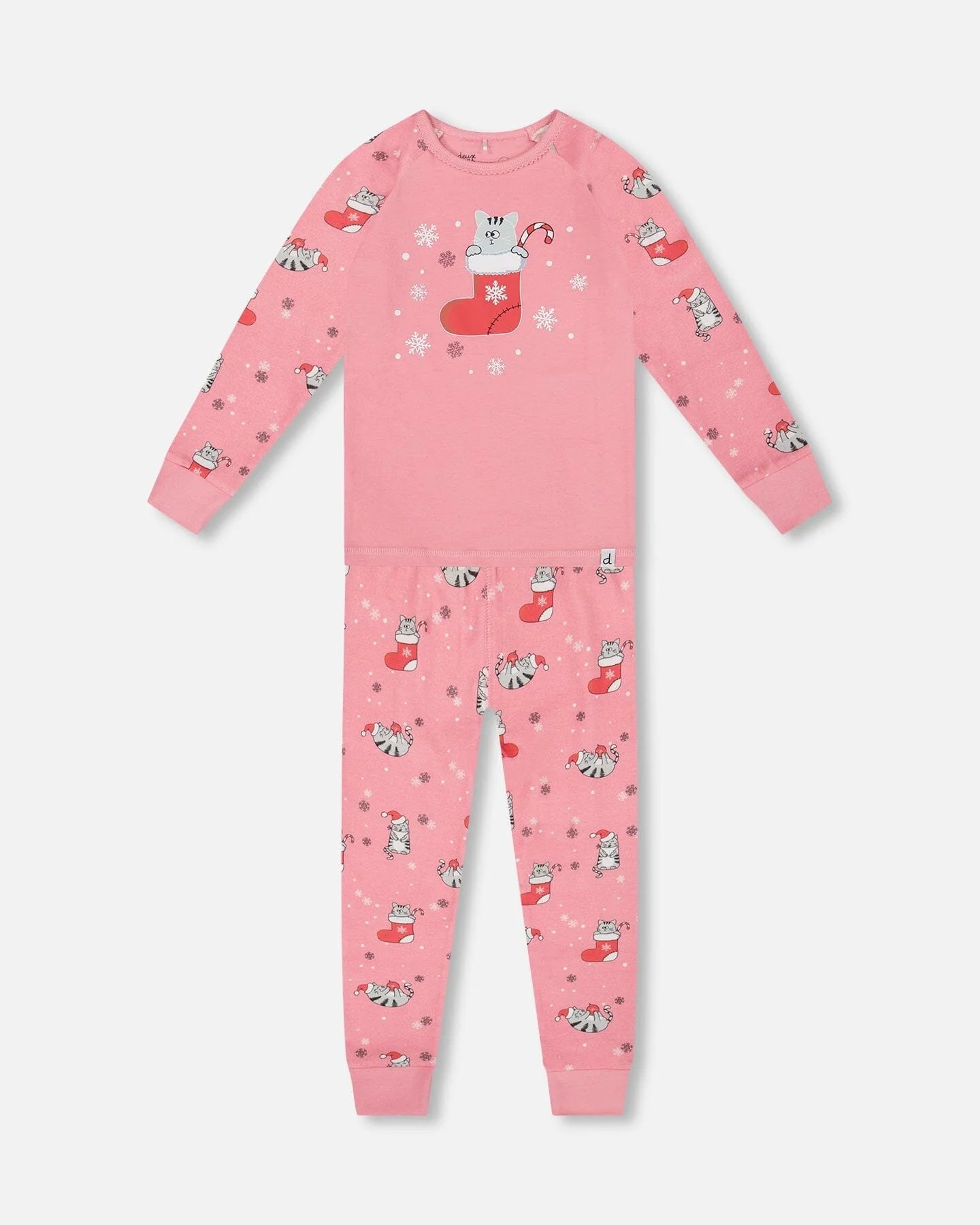 This organic cotton interlock sleepwear set makes every nighttime tuck-in and morning wake-up as adorable as can be! Perfect for sleeping and lounging, these ultra-soft pajamas feature a long raglan sleeve top with a crew neckline, an elastic waist pant with solid cuffs, and a charming cat and Christmas stocking print.