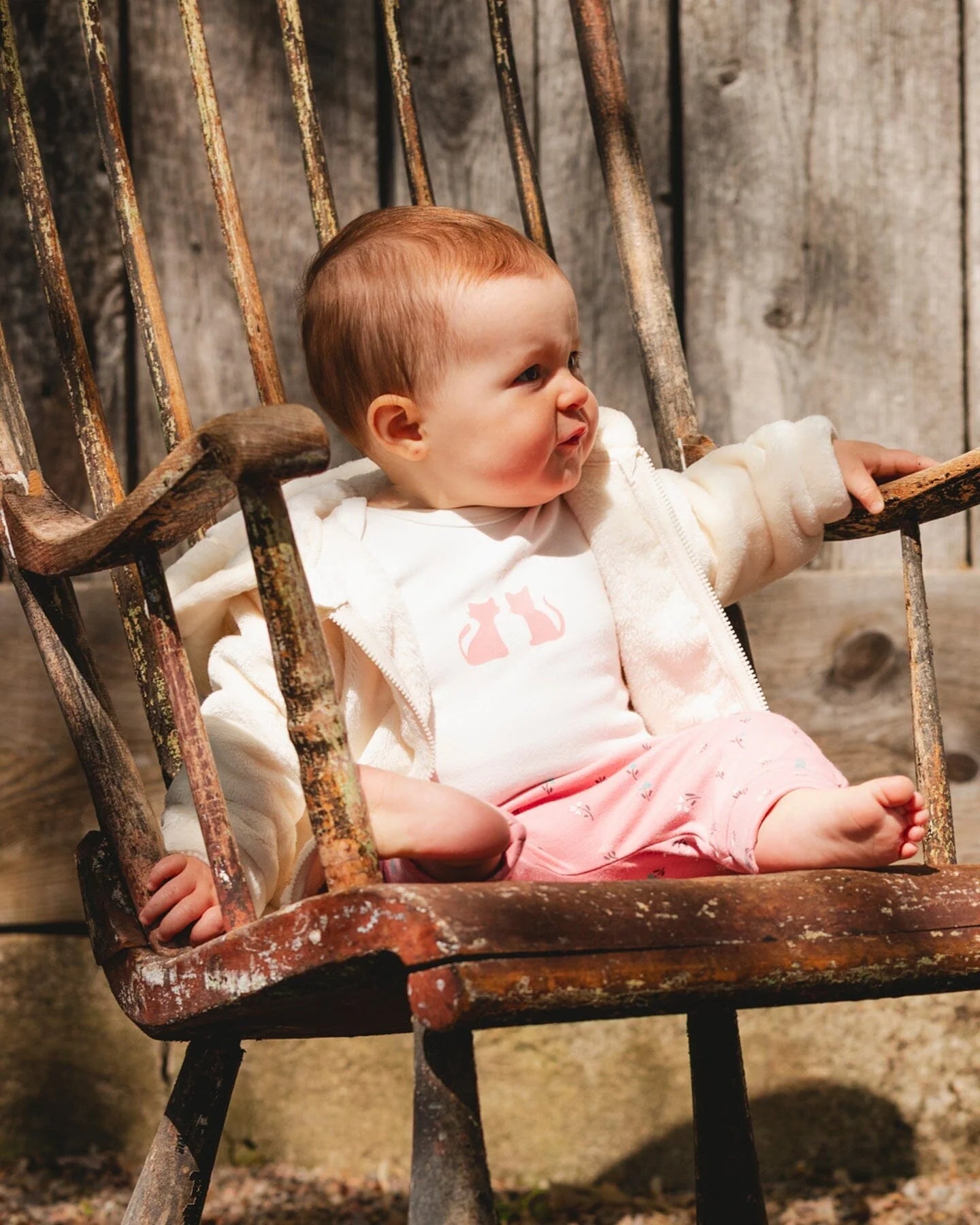 Cozy and warm, our Plush Hooded Jacket in Off White is the perfect addition to your baby girl’s wardrobe. Made from soft plush fabric, this jacket features an adorable bunny pocket with ears, a comfortable hood, and a full-length zipper for easy wearing. Ideal for cooler days, it combines warmth, cuteness, and functionality, with a playful touch.