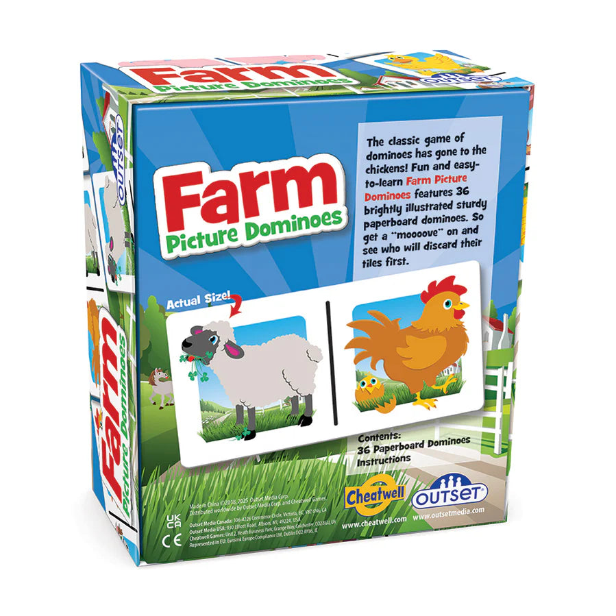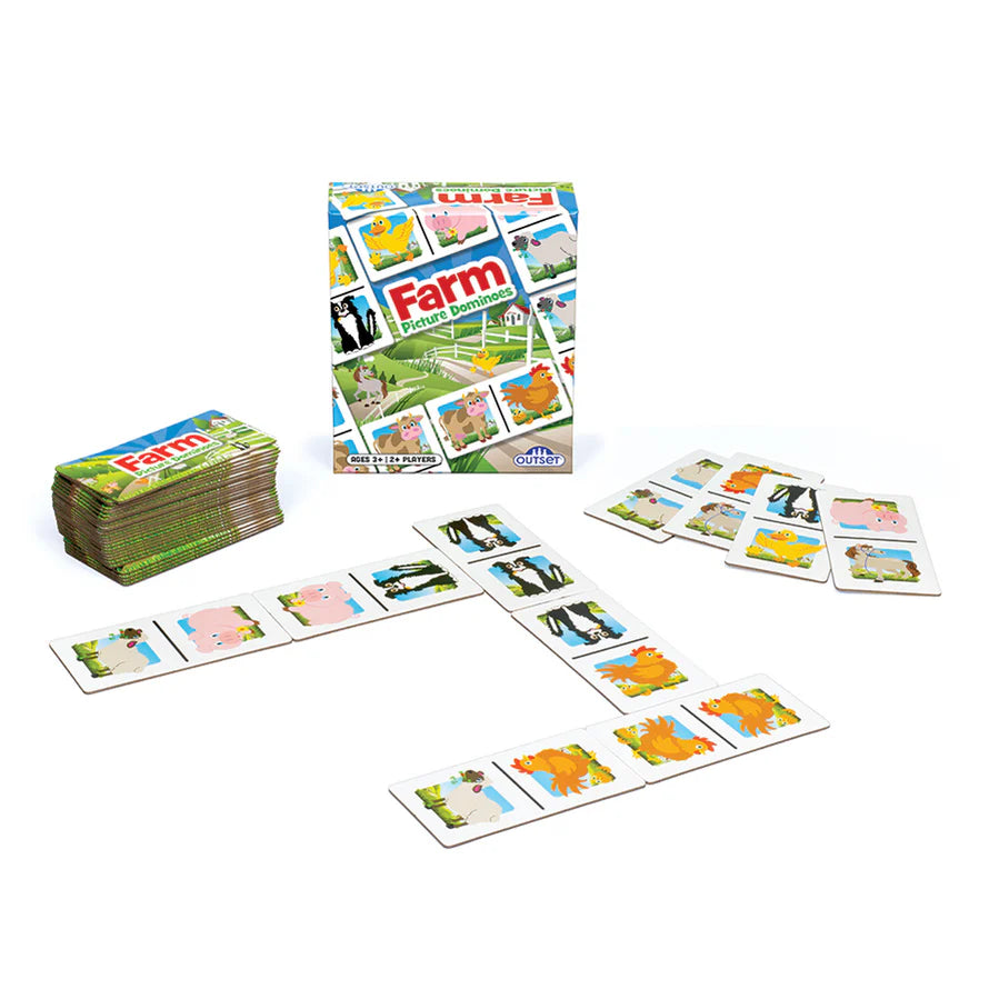 Picture Dominoes: Farm is a classic matching game for the young ones. Each game contains 36 brightly illustrated sturdy paperboard dominoes. Be sure to look for other themes like Dino and Ocean.