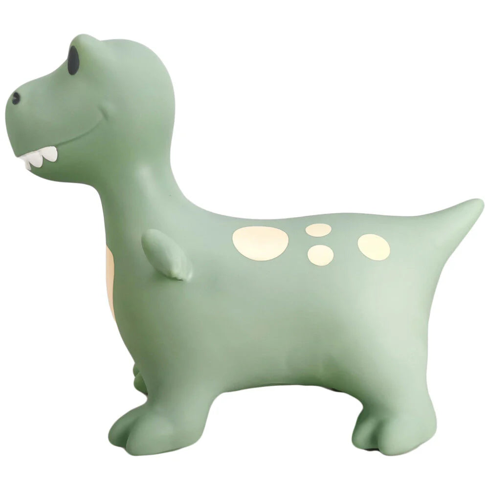 Most children love the classic jumping animal. The combination of its appealing appearance and the opportunity to use their bodies is something most children are drawn to. Jumping animals provide an active form of play where children can train their gross motor skills and vestibular sense. The latter is a sense important for all ages, as it helps maintain balance even in motion. Dexter the dinosaur is designed in a cheerful yet muted colour palette of sage green with soft yellow, white, and anthracite grey markings. Dexter has open eyes and can support a maximum weight of 50 kilograms.