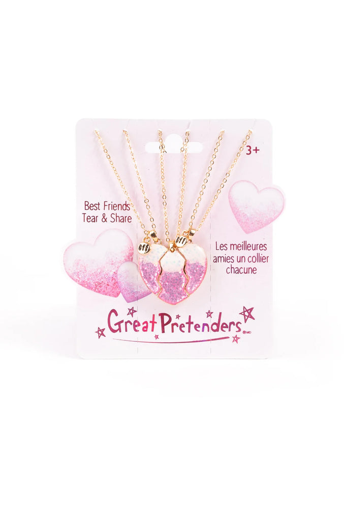 Celebrate your squad with our Besties Era Tear and Share Necklaces! Each gold chain features a dazzling pink sparkly heart pendant that splits perfectly into three pieces—so every bestie gets her own sparkling slice of the magic! Designed for comfort and everyday wear, these necklaces are a beautiful way to show your unbreakable bond and keep your best friends close!