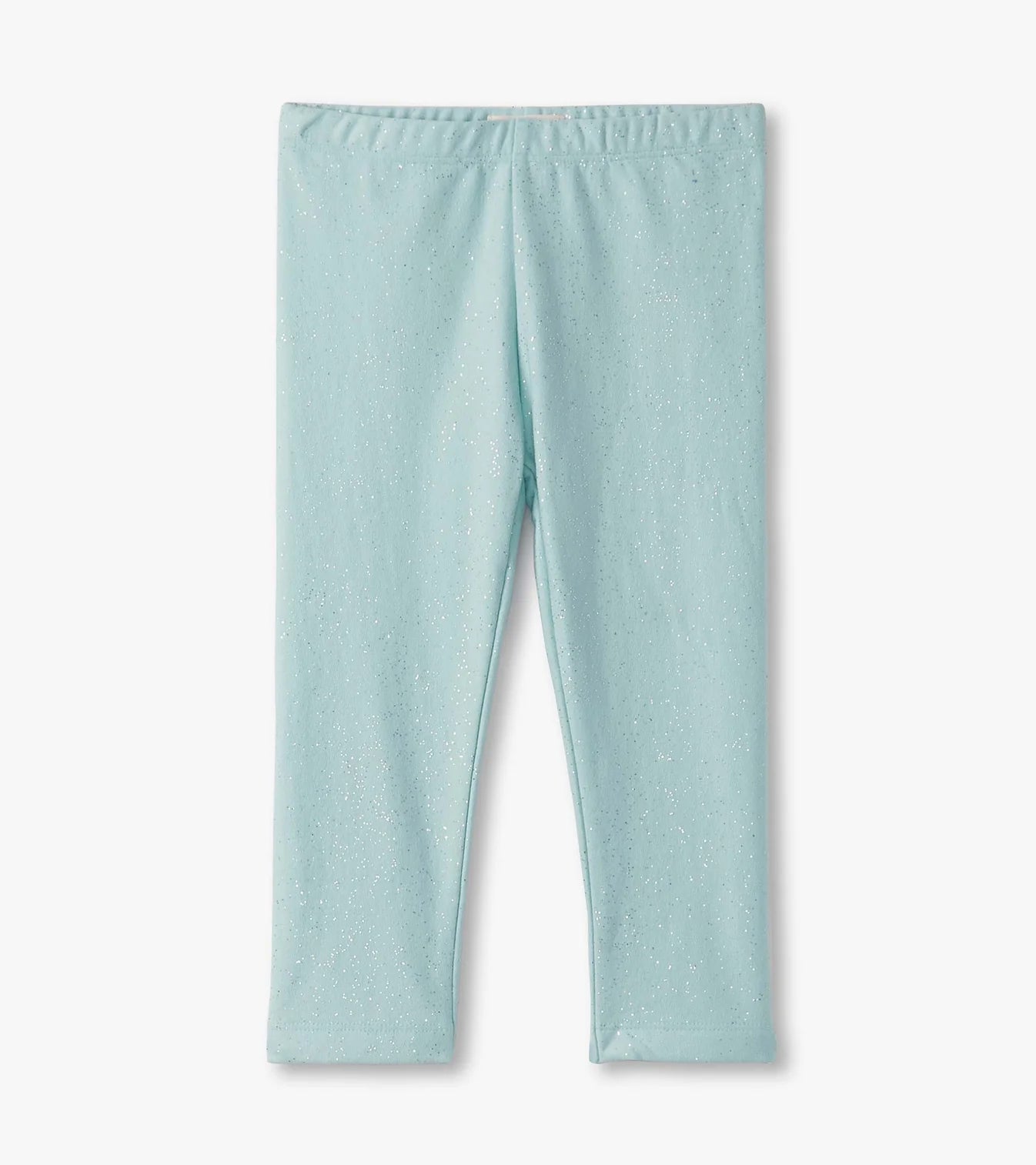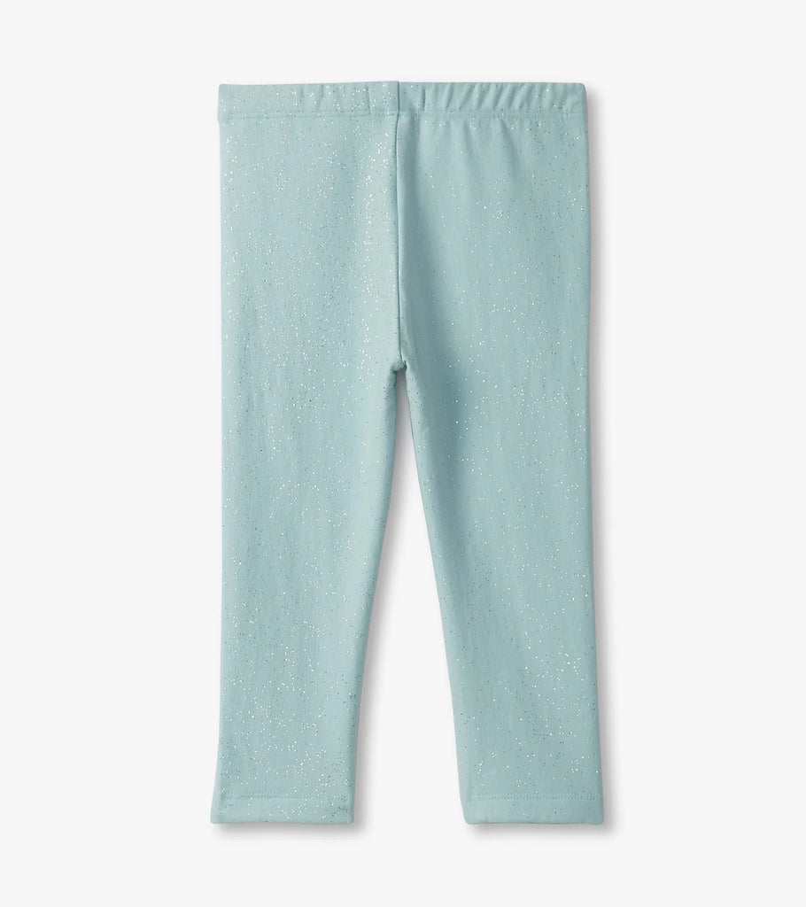 Sprinkle sparkle into her every move with these pastel turquoise leggings, gleaming with an all-over dusting of shiny silver glitter. Made from cozy stretch fleece, they wrap little legs in softness while adding a playful pop of shimmer. The elastic waistband ensures a snug yet gentle fit, while the simple, no-fuss design lets her twirl, crawl, and climb in total comfort. Made of a cotton-spandex blend, they deliver flexible coziness that’s ready for all-day sparkle and smiles.