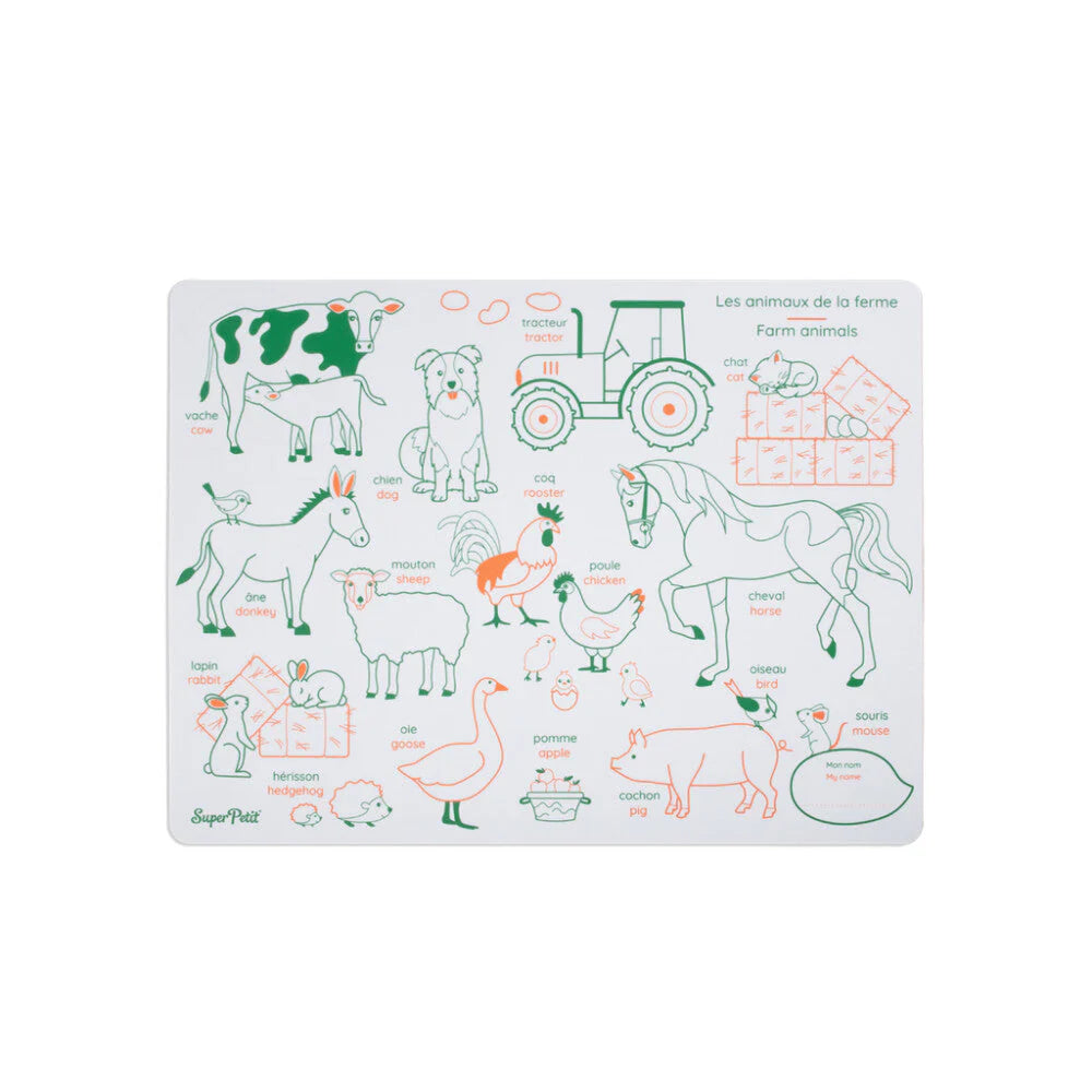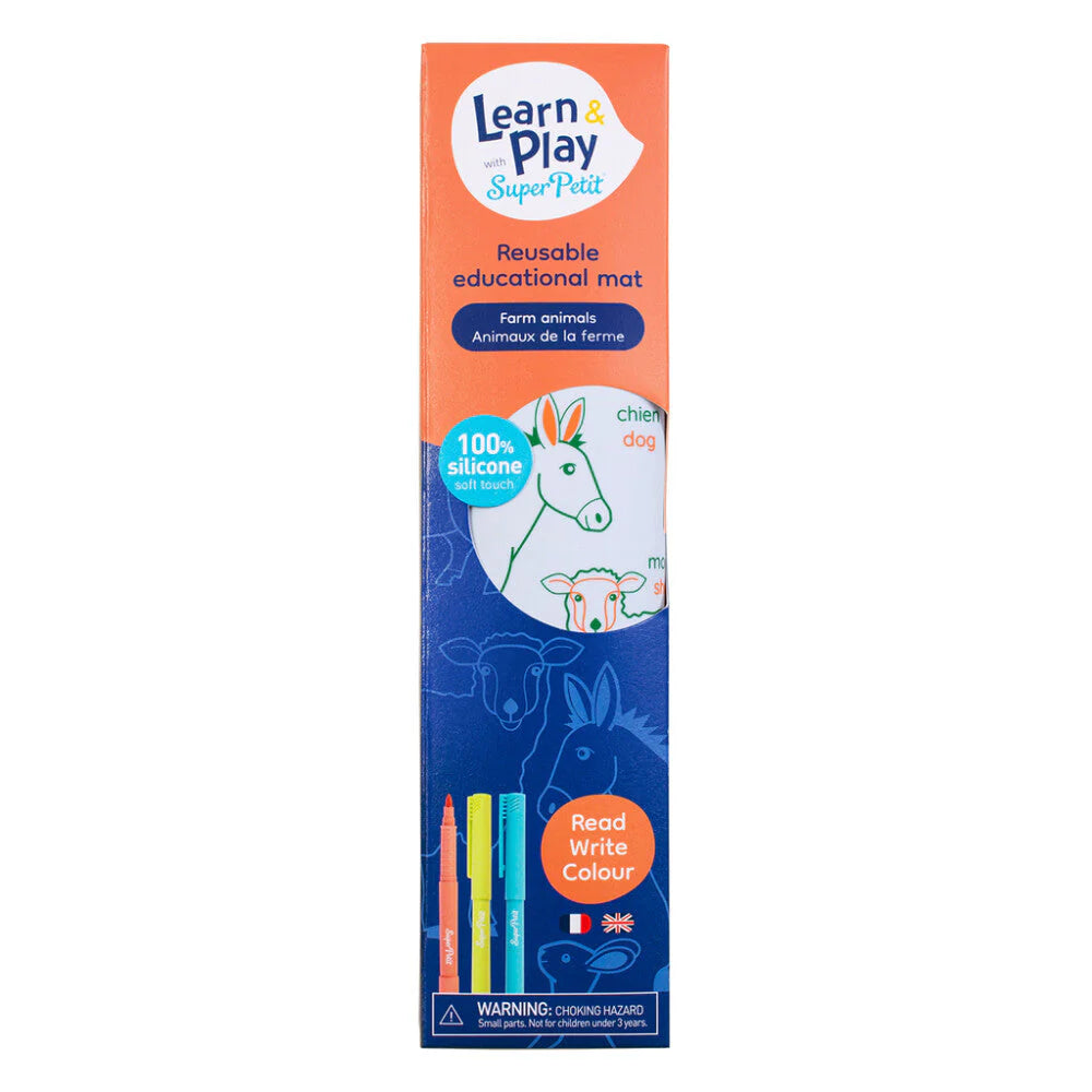 Super Petit Learn & ; Play: THE FARM1,2x3x12 in, 2-sided silicone drawing mat with one marker, in cardboard box, 3+