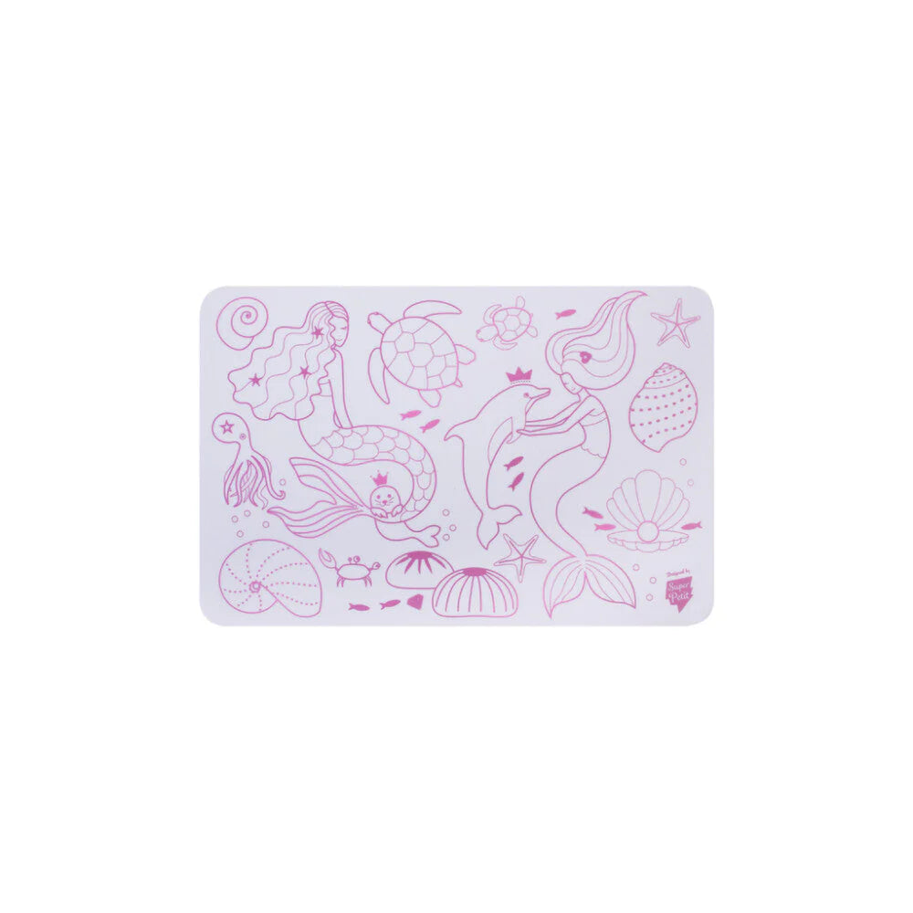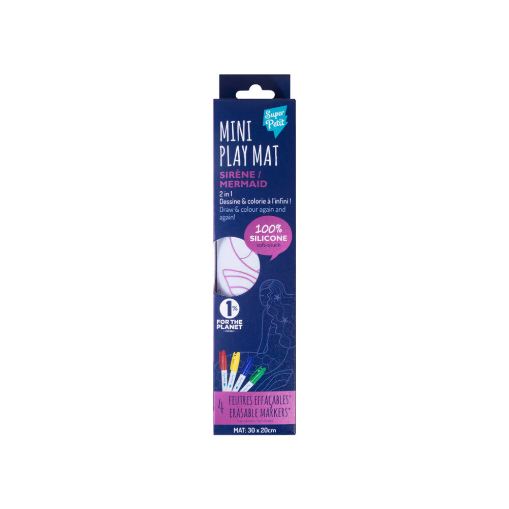 Super Petit Mini Playmat: MERMAID 1,2x2x9 in, reversible silicone drawing mat with 4 markers, in cardboard box, 3+