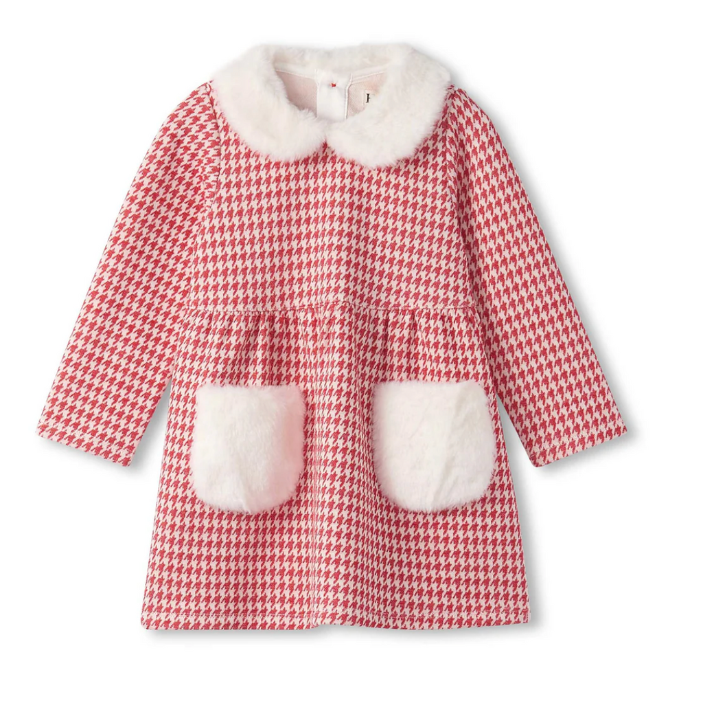 Hatley Red Houndstooth Fun Fur Trim Dress