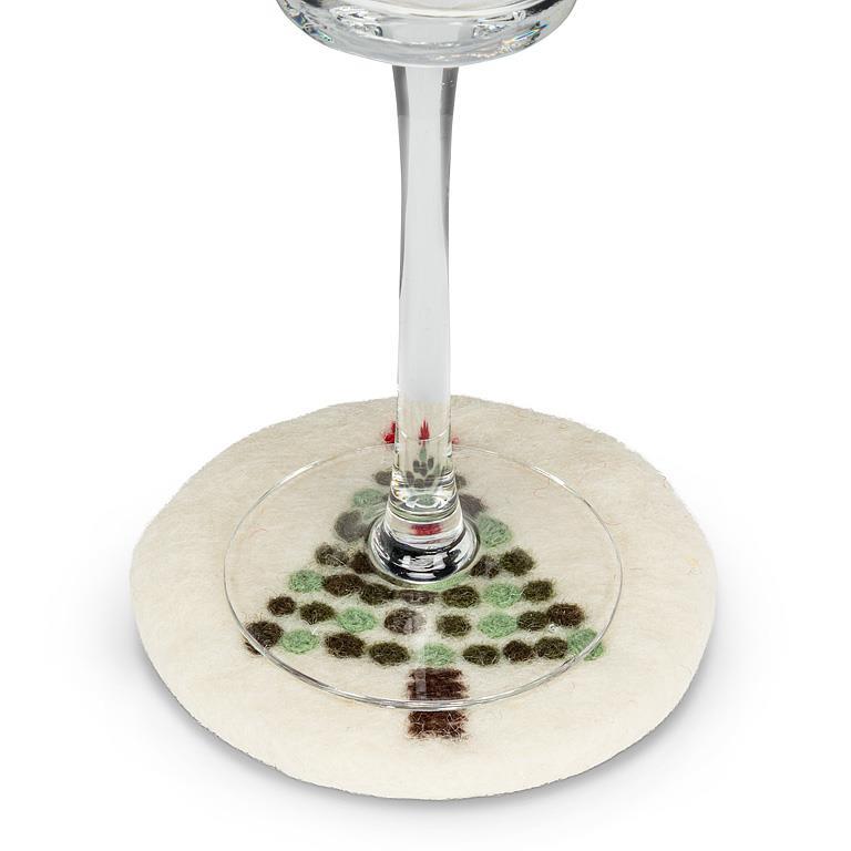 Bring some holiday-themed fun to your dining table while protecting it at same time with this charming felt Dotted Tree Coaster. Made from 100% sheep wool and handcrafted by female artisans in Nepal, this elegant circular coaster is accented with a decorated tree for a playful complement to your kitchen or dining room decor. A matching trivet is also available.