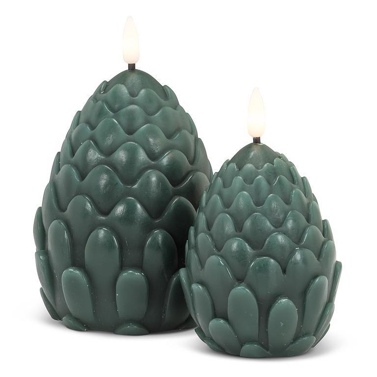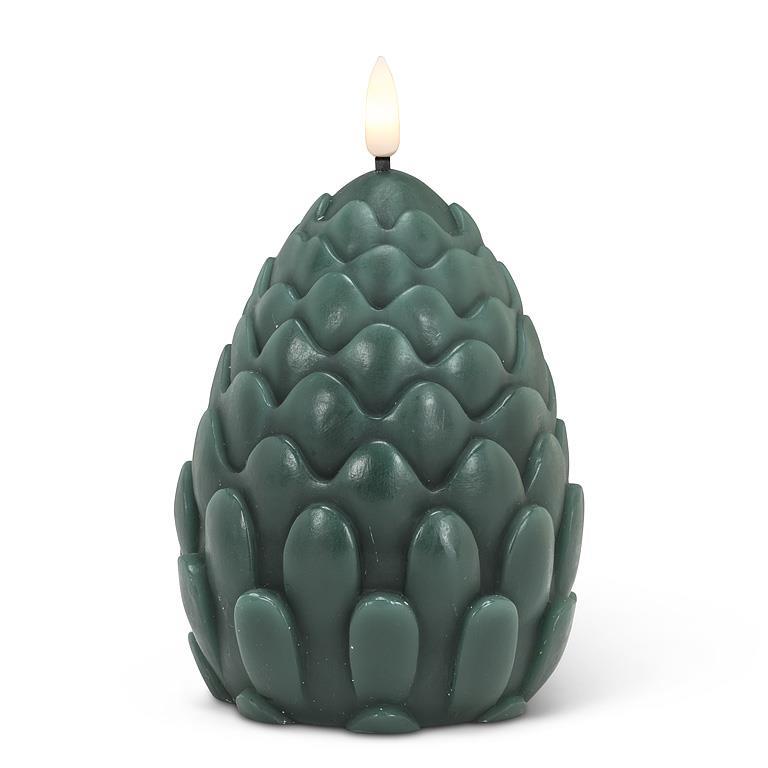 Bring some warm illumination to any holiday setting with this pine cone LED Candle. Crafted out of plastic and real wax, the evocative yet minimalist style of this LED candle provides all the ambient glow of candlelight without any of the flame or mess. Features a 6-hour timer; requires 2xAA batteries (not included) for a run-time of 240+ hours.