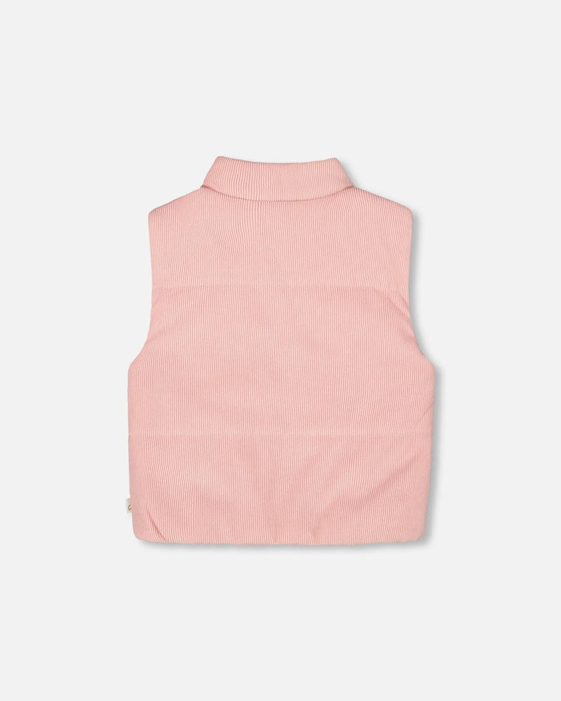 Our Corduroy Puffy Sleeveless Vest Dusty Pink is a sweet and stylish layering piece for chillier days. Made from soft corduroy with light padding for warmth, this sleeveless vest features a high collar, full-length zipper, and gentle elastic at the hem to keep it snug. It’s perfect over tees, knits, or dresses from our “Crazy For Llamas” collection.