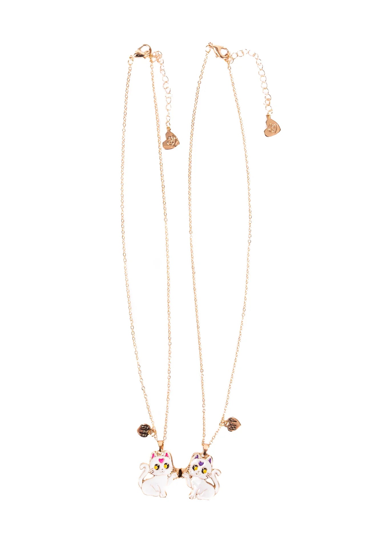 Our Smitten Kitten Tear & Share Necklaces come as a pair of white kitten pendants, each accented with pink or purple hues. When the necklaces come together, the kittens appear to hold hands, a charming symbol of friendship and togetherness. Lightweight and comfy for everyday wear, these necklaces are perfect for sharing with your closest friend or sibling.