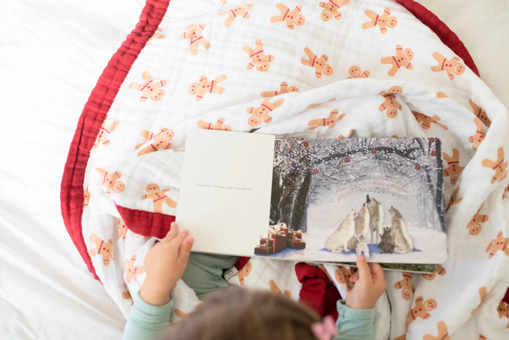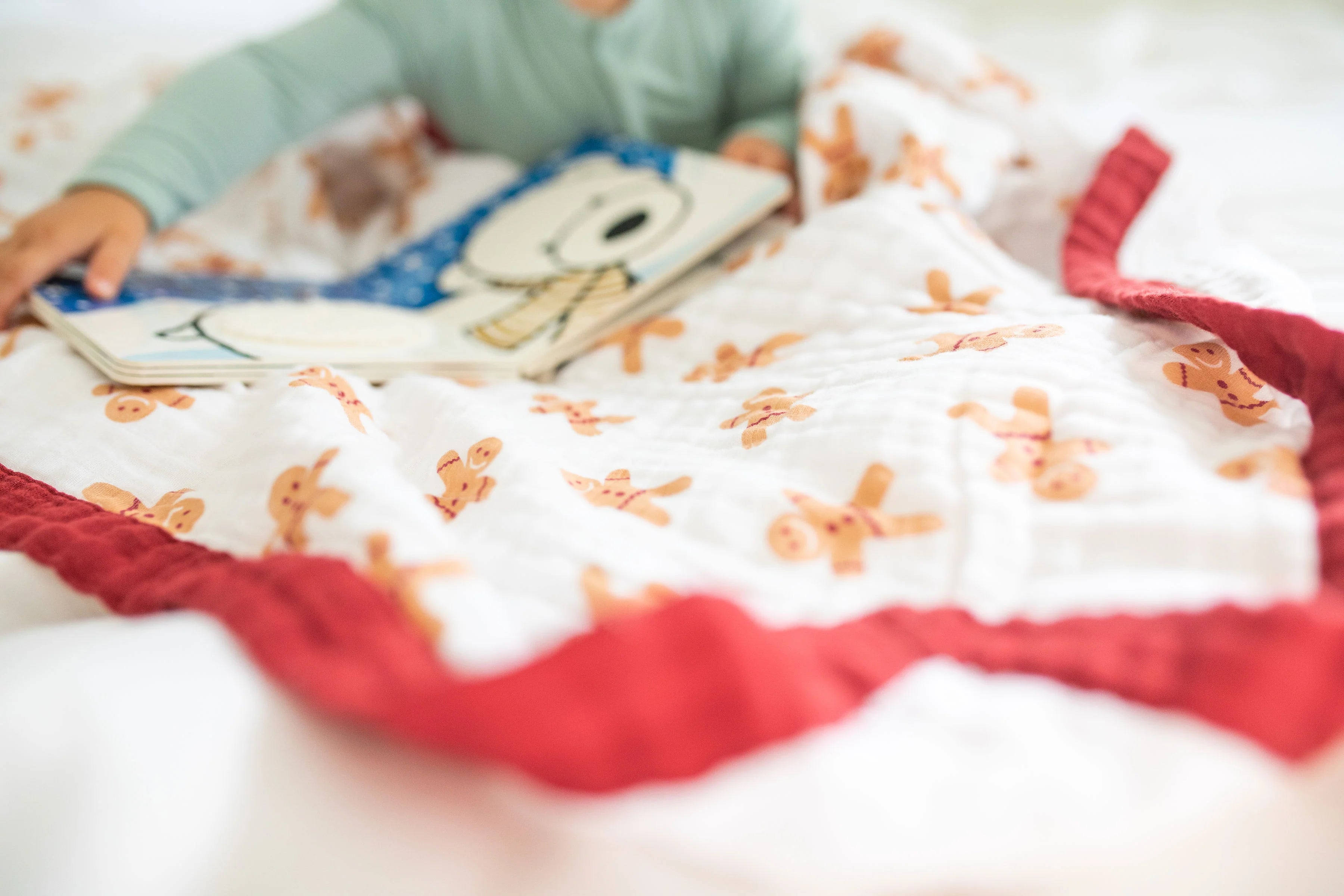 Christmas blanket, designed to keep little ones warm, cozy, and photo-ready year after year. Made with three layers of premium cotton muslin, it features a festive red trim and reversible holiday prints—perfect for baby’s first Christmas photos, family holiday cards, and cherished traditions. Soft, breathable, and timeless, this keepsake blanket makes a thoughtful holiday gift that families will treasure for seasons to come.